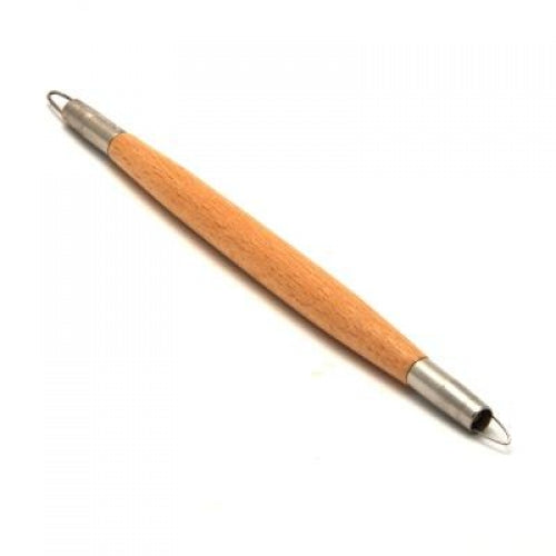 Wooden handled, double ended sgraffito tool with one thin wire and one thicker wire. Both ends have the popular V shape.